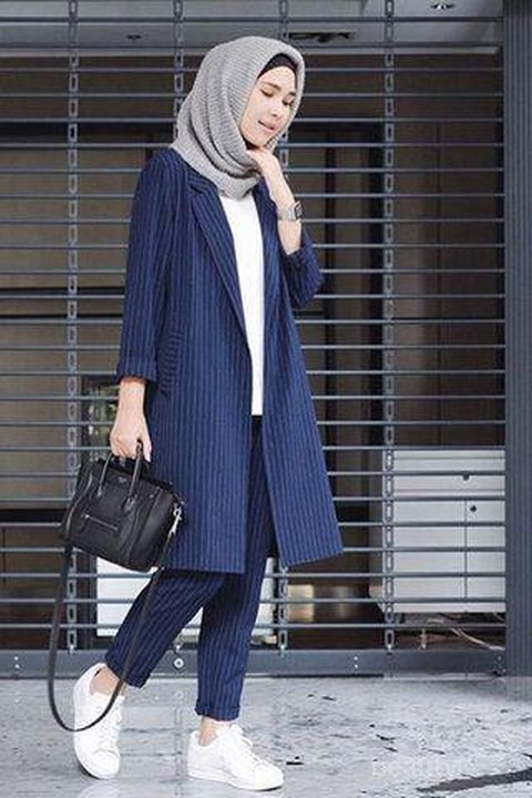 Jika kamu ingin mencari style hijab untuk gaya smart casual yang simpel dan minimalis, padu padan blazer set yang disandingkan dengan sneakers akan memberikan kesan outfit fashionable meskipun sederhana. Perhatikan juga pilihan warna untuk memberikan kesan elegan pada tampilan yang cocok digunakan untuk ke kantor dengan gaya santai ini.