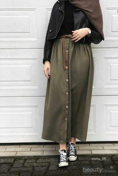 Untuk padu padan style hijab casual yang lebih manis, gunakanlah rok berkancing yang digunakan diatas panggul. Kemudian, sandingkan dengan leather jacket untuk hasil outfit casual hijab yang classy dan minimalis. Tampilan ini cocok banget digunakan saat hangout dengan teman-teman di akhir pekan.