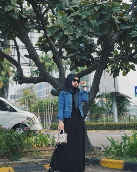 Tak hanya bisa dipadukan dengan rok, denim jacket juga bisa dipadukan dengan loose dress lho. Kamu bisa memilih dress polos berwarna netral, seperti hitam. Kemudian, tambahkan hijab dengan warna senada. Agar tampilanmu tetap santai, kamu bisa menambahkan denim jacket seperti itu. Bagaimana ladies? Kece kan fashion hijab modern ini!