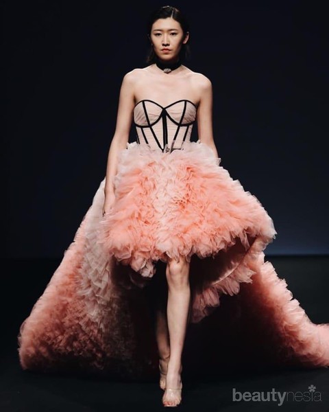 Rok berbahan tule ini dan memiliki model bergelombang dari pinggang. Dengan warna pink peach yang terkesan cantik, feminim, dan manis sekali. Rok ini bagian dari koleksi STARBIE yang memiliki panjang kurang lebih 2 meter dari pangkal pinggang, rok ini pernah di pamerkan Monica dalam panggung Star Fashion Week di Shanghai China, pertengahan 2018.