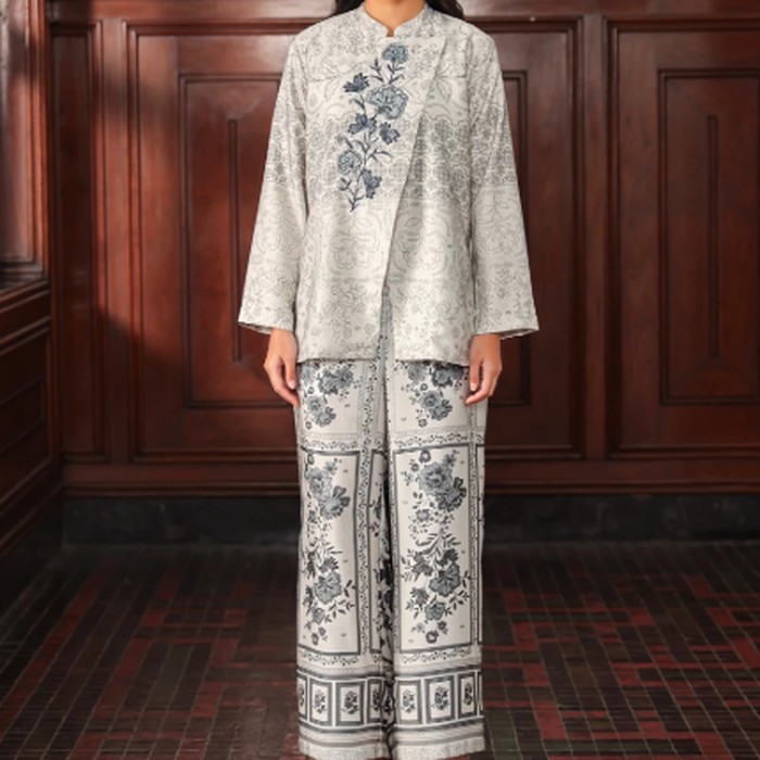 Untuk kamu yang ingin tampil maksimal dan mewah, ada Rashada Set dari Geulis.id yang bisa jadi pilihan. Setelan ini menghadirkan desain yang sangat rapi dan halus, terdiri dari atasan bergaya Janggan yang elegan dan celana panjang. Penggunaan bahan jacquard dengan detail bordir pada atasan serta doff silk pada celana menjadikan rekomendasi baju lebaran ini berada di kelas tersendiri.