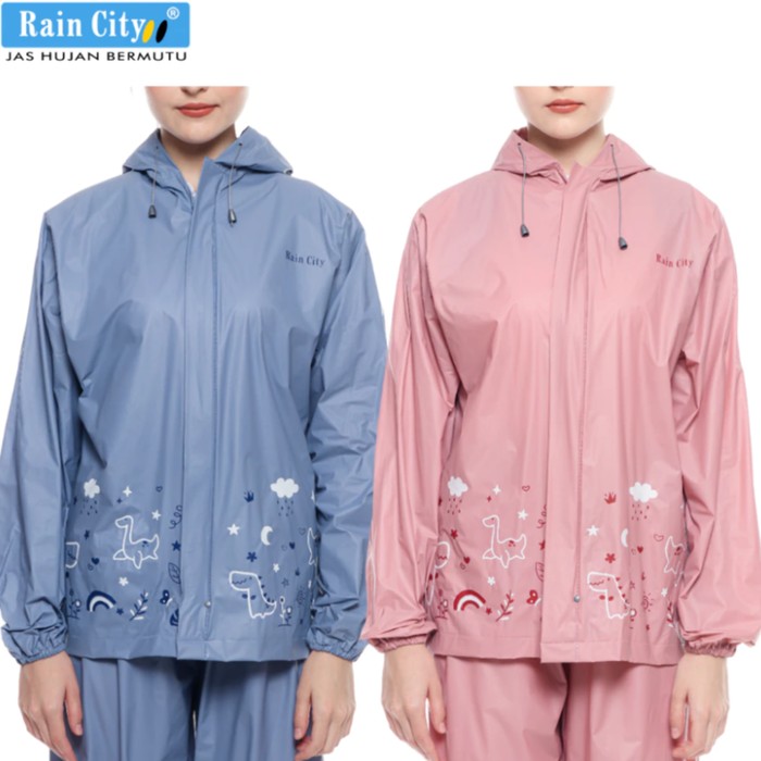 Menariknya, jas hujan ini memiliki desain gambar doodle dinosaurus menggemaskan yang terdiri dari warna biru dan pink. Jas hujan Rain City muat hingga BB 70kg, lho, Beauties, harganya juga ramah di kantong. Tertarik untuk membeli?