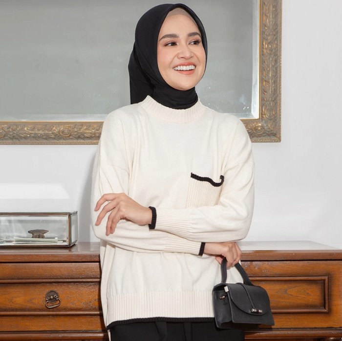 Atasan knitwear dari Lozy Hijab juga bisa dijadikan outfit yang nyaman untuk daily. Memiliki bahan yang lembut dan tidak membuat gatal, sehingga sangat nyaman digunakan. Knitwear ini memiliki detail mock neck dan aksen warna pada bagian kantong, pinggang dan ujung lengan. Gaya casual dan terlihat rapi bisa digunakan untuk outfit ke kantor atau kampus dipadukan dengan celana atau rok.