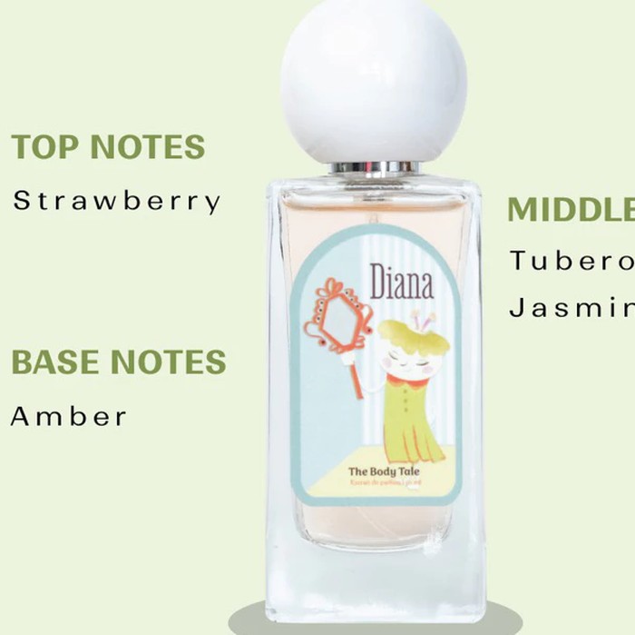 Dengan konsentrasi Extrait de Parfum, daya tahannya luar biasa, klaimnya bisa mencapai 12 sampai 24 jam. Wanginya bertransformasi dari manis lembut menjadi elegan dan dewasa seiring waktu, menciptakan efek inner princess yang anggun dan menawan. Diana dari The Body Tale cocok untuk kamu yang ingin tampil elegan di segala acara.