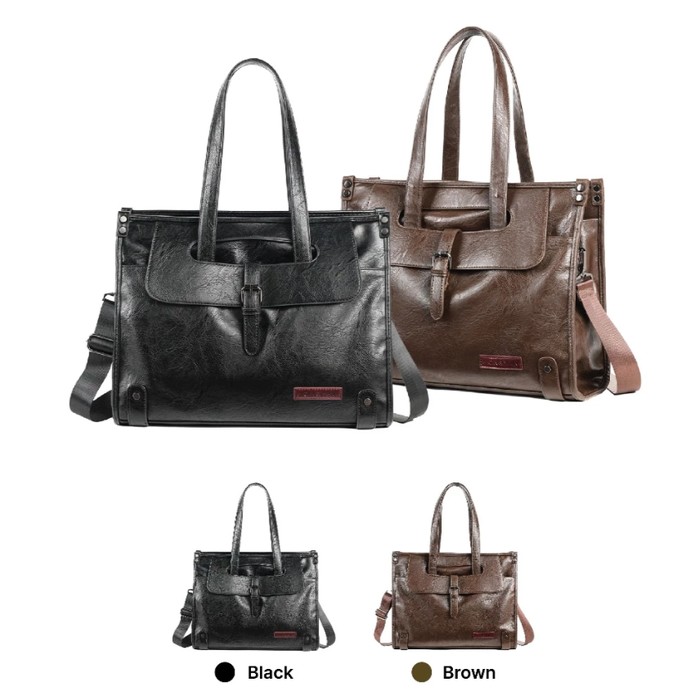 Didesain simpel yang terdiri dari dua warna dalam satu tampilan. Terbuat dari bahan kulit PU berkualitas dan anti air. Jadi, kamu tidak perlu khawatir tas akan basah saat musim hujan. Memiliki ruang besar yang muat banyak barang, seperti laptop, notebook, iPad, dan tumbler.