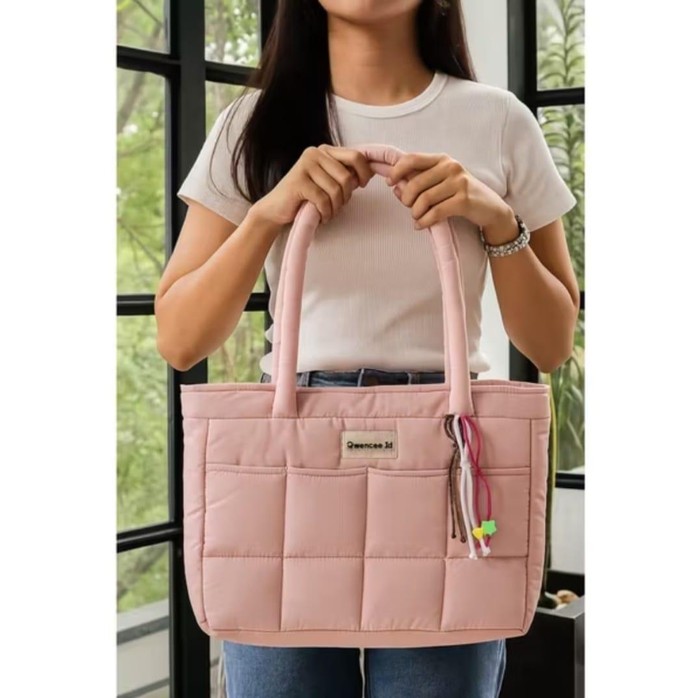 Buat kamu yang mencari tas laptop dengan tampilan nggak lebay tapi tetap bagus dan praktis, Qwencee Puffy Bag bisa jadi pilihan tepat. Tas ini hadir dengan desain tote bag yang mengkilap, motif polos, dan permukaan halus, membuatnya stylish untuk digunakan sehari-hari. Dengan bahan puffy dan kompartemen luas, tas ini mampu menampung laptop mulai dari 14 hingga 16 inci dengan nyaman.