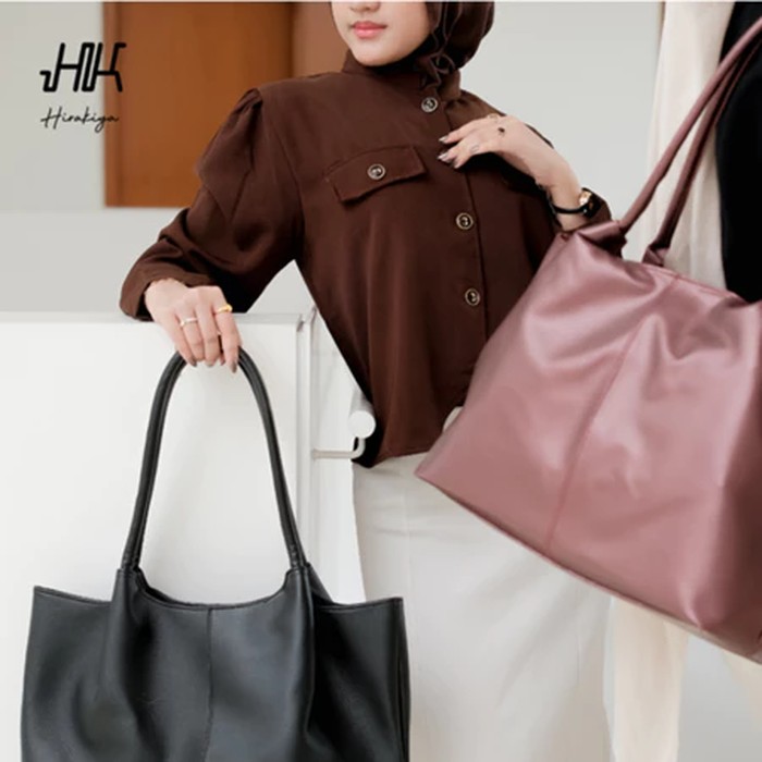 Jika ingin tampil lebih sederhana, tetapi tetap butuh banyak tempat untuk barang bawaanmu, tas dari Heelsaddict ini sepertinya cocok. Tote bag satu ini disajikan dalam 3 pilihan warna, Black, Maroon dan Brown.