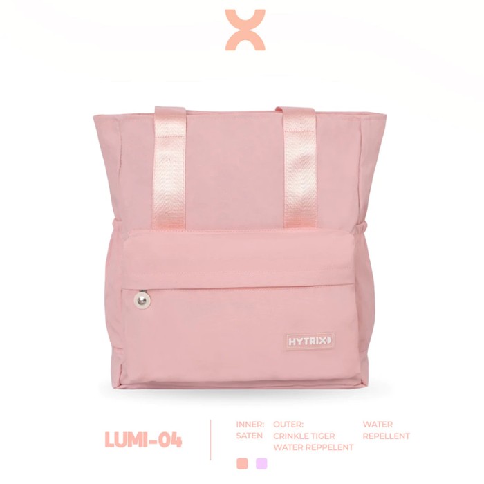 Lumi Series Backpack 2 in 1 ini bisa jadi tas multifungsi sebagai backpack maupun tote bag, sehingga praktis dipakai untuk berbagai aktivitas. Tas ini terbuat dari bahan crinkle tiger water repellent yang aman terhadap cipratan air atau hujan ringan. Tas ini memiliki satu kompartemen utama dan satu kompartemen depan dan dua saku kanan dan kiri yang bisa digunakan untuk botol minum.