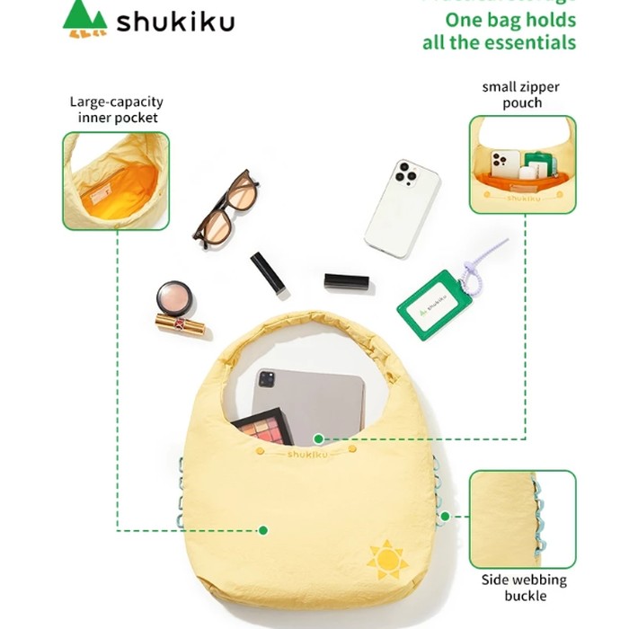 Buat kamu yang suka tas ukuran besar dan cemplang cemplung, cloud bag dari shukiku ini cocok buat kamu, Beauties. Tas ini sudah berbahan water resistant, sehingga bisa menahan cipratan air atau hujan ringan. Punya pilihan warna-warna pastel yang lembut, tas ini bisa melengkapi outfit harian kamu. Tak hanya itu, tas ini juga ringan banget kayak “awan” sesuai namanya, Beauties.