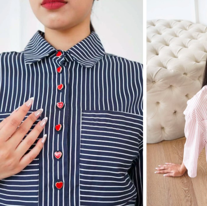 Bagian paling standout ada pada detail kancing berbentuk hati warna merah, unik, playful, tapi tetap elegan, yang membuat basic striped shirt ini terlihat jauh lebih fashionable dibanding kemeja biasa. Cutting-nya relaxed dengan lengan 7/8 dan panjang 50 cm, cocok untuk diselipkan (tucked-in) ataupun dipakai loose saat mau tampil effortless. Dengan ukuran all size yang jatuhnya nyaman, Luna Striped Shirt jadi pilihan tepat buat kamu yang ingin outfit rapi tapi tetap ada sentuhan cute dan unik yang buat look makin hidup.