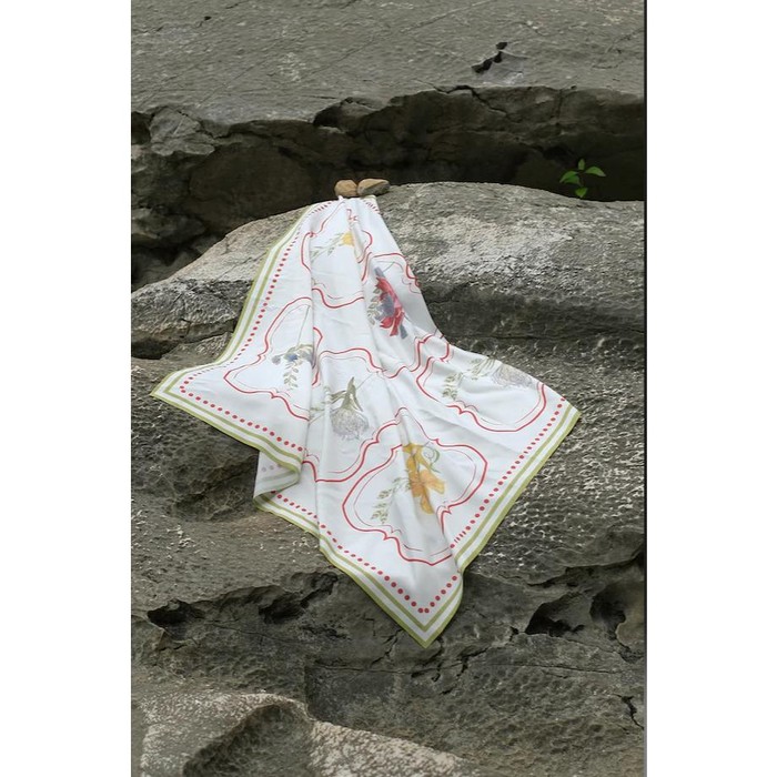 Dengan bahan polyester ukuran 60 x 60 cm, scarf ini bisa dipakai sebagai bandana, headband, gelang, ikat rambut, aksesori tas, dan juga aksesori lain sesuai selera.