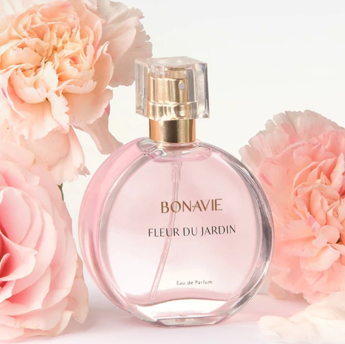 Parfum Bonavie Fleur du Jardin memiliki aroma floral yang segar dan feminin. Fragnance yang diracik langsung di Paris dan berstandar internasional ini bisa menjadi pilihan parfum lokal dengan harga terjangkau. Parfum ini dikemas dalam botol bening berukuran 30ml yang memiliki desain minimalis dan warna dusty pink, mencerminkan karakter aroma yang lembut dan feminin.