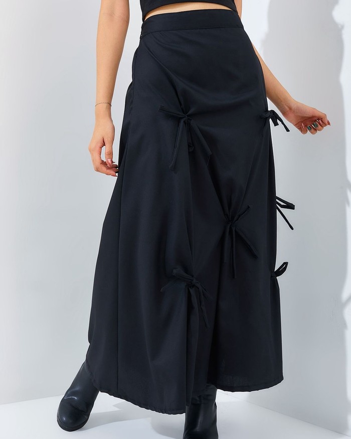 Detail pita-pita yang manis di bagian depan tidak terlalu berlebihan untuk dipadu dengan atasan berenda atau berlengan lolita. Kamu bisa dapatkan rok panjang ini dengan merogoh kocek sebesar Rp279 ribu.