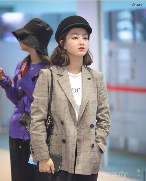 Foto: https://www.instagram.com/jypjihyo/?hl=id Tampilan cantik Jihyo makin terpancar dalam balutan blazer Korea bermotif plaid ini. Dengan mode kerah rever, Jihyo tampak professional. Dalam style ini, Jihyo menjadikan blazer sebagai outer dan t-shirt putih sebagai dalaman.