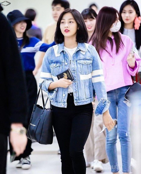 Foto: https://www.instagram.com/jypjihyo/?hl=id Tidak melulu hot pants, Jihyo juga tampil menggemaskan dalam balutan jeans outer + t-shirt + celana hitam panjang. Ada aksen dua kantong di bagian depan dada, aksen warna putih di bagian lengan, bawah kantong dan dua bahu yang membuatnya makin terlihat stylish.