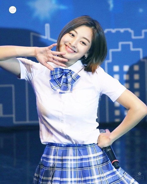 Foto: https://www.instagram.com/jypjihyo/?hl=id Bukan Jihyo namanya jika tidak tampil menawan dengan wajah baby face-nya. Dengan uniform ala Korea beraksen pita dan rok pendek, tampilan Jihyo kembali mencuri perhatian di atas panggung. Untuk atasannya, Jihyo mengenakan banju berwarna putih polos yang simple.