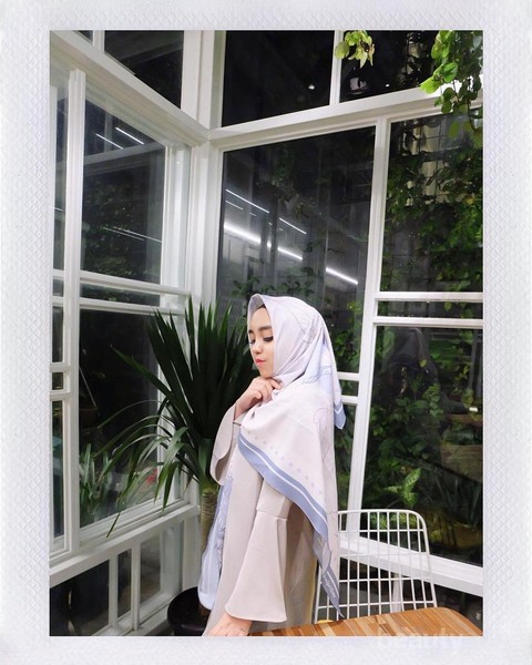 Cantik dan anggun Salmafina mengenakan scraf Syar'i sutra dengan motif bunga. Terlihat simple dan sederhana namun tetap fashionable ya ladies. Gaya hijab yang ditampilkan Salma ini cocok banget dipakai untuk menghadiri acara formal atau untuk pergi ke kantor lho. Terlihat simple namun tetap modis dan kekinian mengenakan hijab syar'i.