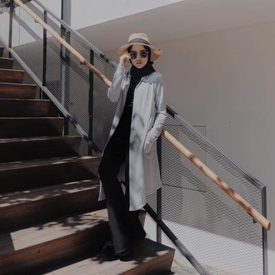 Ngomongin gaya, gak lengkap rasanya kalau tidak memasukan sebuah monochrome style ke dalam list. Yap, untuk kamu yang tidak terlalu suka tampil mencolok atau menilai bahwa penampilan terbaikmu ada pada warna hitam, tidak ada salahnya mencoba gaya yang satu ini. Flare pants never goes wrong. Pilih flare pants berwarna hitam serta atasan yang juga berwarna hitam. Namun, pilih warna abu-abu atau putih untuk outer panjang hijabmu, dan jadilah gaya monochrome yang kamu inginkan!
