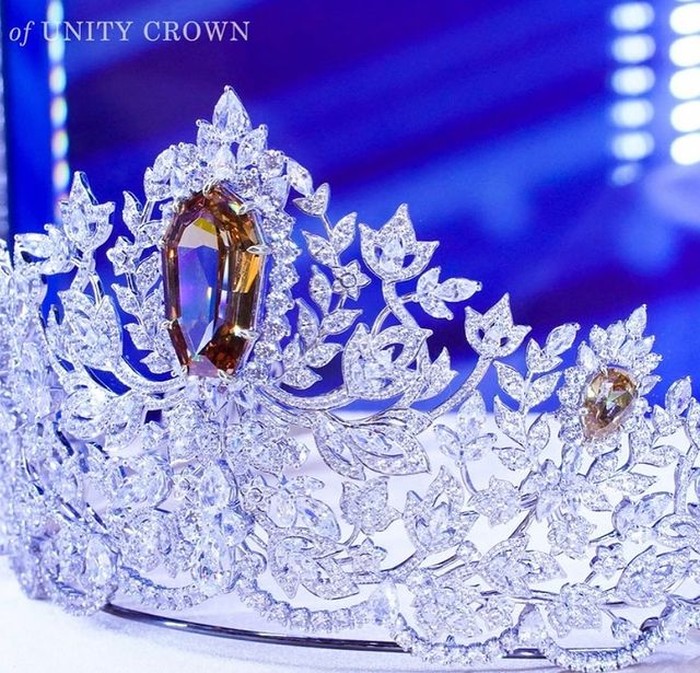 Sementara, mahkota Miss Universe yang baru dihiasi berlian dan gradasi batu safir yang cantik. Bagian puncak mahkota terdapat batu safir yang bentuknya mirip buah pir seberat 45,14 karat.Â