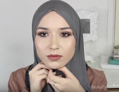 - Saat akan mengikat jilbab dengan jarum pentul pada bagian dagu, berikan aksen lipatan sebelum kamu menggunakan jarum pentul.