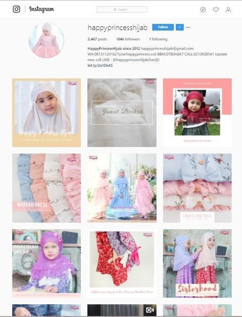 Online shop berikutnya yang menjual aneka hijab fashion untuk anak adalah @happyprincesshijab. Di online shop ini, kamu bisa menemukan bermacam-macam dress berdesain ruffles, flowery, beads yang tentunya bakal bikin si buah hati kelihatan lucu dan manis. Warna yang tersedia didominasi warna-warna pastel dengan material yang terlihat mewah dan pastinya disukai anak-anak. Hijab yang dijual juga berdesain bergo, yang pastinya praktis banget untuk balita dan anak-anak.
