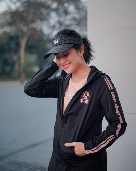 Perpaduan antara jaket, kaus, dan topi dapat menampilkan sisi sporty, Ladies. Seperti Dian, kamu bisa nih tampil sporty dan tetap cantik. Menarik!