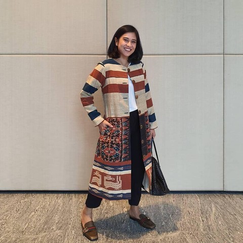 Cardigan ethnic yang dipadukan dengan kaus oblong dan celana jeans hitam bisa jadi salah satu look yang anti ribet. Jika kamu sedang diburu-buru untuk hadir dalam acara formal tapi tidak memungkinkan untuk ganti baju, tips ini bisa kamu tiru.