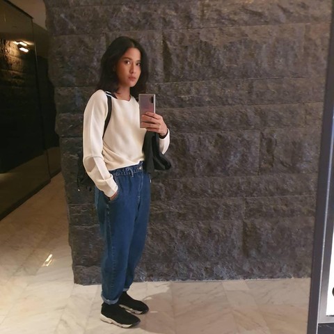 Sweater dengan warna kopi susu yang dipadukan celana jeans model oversized ini cocok digunakan di musim penghujan seperti sekarang, Ladies. Kamu bisa menggunakan sneakers warna hitam dan tas ransel untuk menyempurnakan tampilan casual-mu.