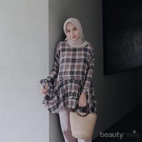 Style hijab yang paling mudah diaplikasikan adalah feminine look. Look ini sangat disukai hijabers karena fleksibel dan terlihat casual hijab at the same time. Apalagi jika kamu memilih sebuah atasan bermotif kotak-kotak dengan desain flare pada bagian bawah dan sleeves. Nggak masalah jika warna atasan ini bukan warna pastel. Meski memiliki warna cenderung netral dan gelap, kamu masih akan terlihat cute. Padukan dengan hijab dan bawahan berwana cerah untuk mengimbangi atasannya.