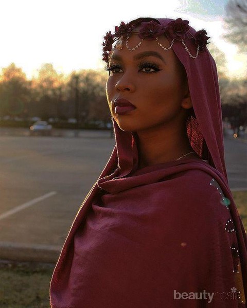 Coba padukan headpiece hijab kamu dengan aksesoris yang memiliki pola sama atau mirip. Ini membuat tampilan kamu menjadi elegan dan mewah dalam waktu bersamaan. Kamu tidak perlu menggunakan make up yang terlalu "berat", cukup gunakan make up yang natural, ya, beautynesian!