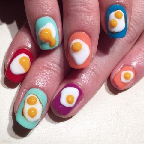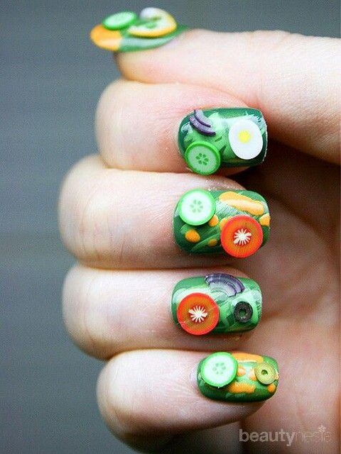 Yummy! kamu bisa bayangin nggak kelezatan salad yang ada di nail art yang satu ini? Warna dan isi sayuran tampak seperti asli dan bahkan lengkap dengan potongan telur yang menggugah selera. So cool!