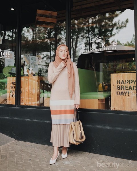Rok lipit dipadukan dengan dress panjang? Bisa banget kok ladies, intip aja nih mix and match ala selebgram cantik Ashry Rabani yang bisa banget kamu tahu tiru. Rok lipit berwana nude lalu dipadukan dengan dress selutut senada, bikin penampilan kamu terkesan minimalis dan cantik nih ladies. So, feminim!