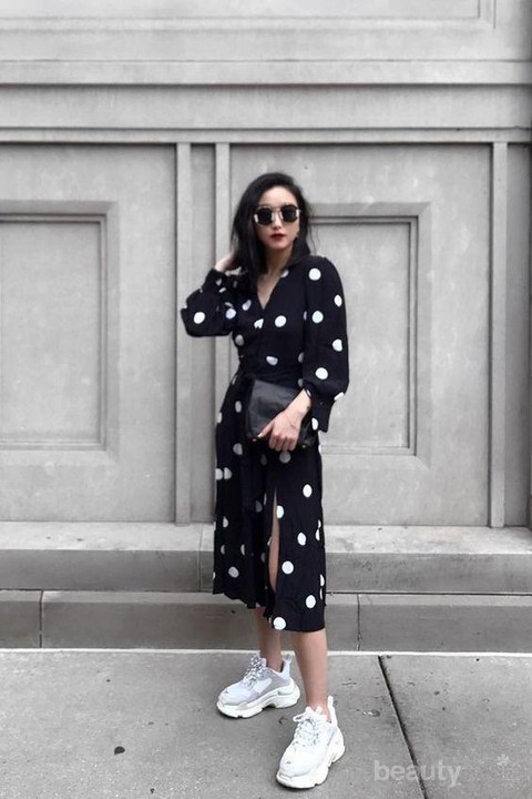 Siapa bilang pakai dress enggak cocok menggunakan sneakers? Sekarang pakai dress pun asal kamu bisa mix & match pakai sepatu apa saja jadi kece lho Ladies!