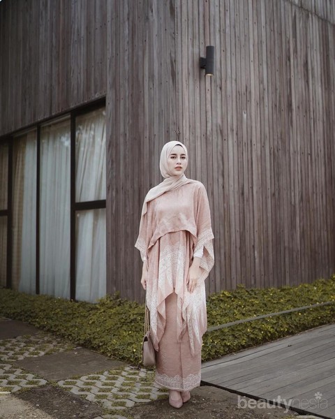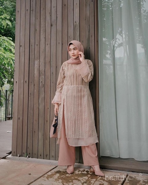 Mau tampil elegan saat menghadiri akan nikah temanmu? Yuk kamu bisa mencoba inspirasi busana ala Nisa Cookie yang satu ini. Kamu bisa memilih warna netral sebagai warna dasar pakaian, kemudian tambahkan sedikit motif pada atasan, tidak melulu dress, kamu jug abisa mencoba bawahan kulot dengan warna senada dengan kerudung lho. Untuk lebih sempurna, kamu juga bisa menambahkan sling bag kecil dengan model sederhana. Meskipun sederhana, kamu akan tetap terlihat elegan dengan warna-warna soft tersebut.