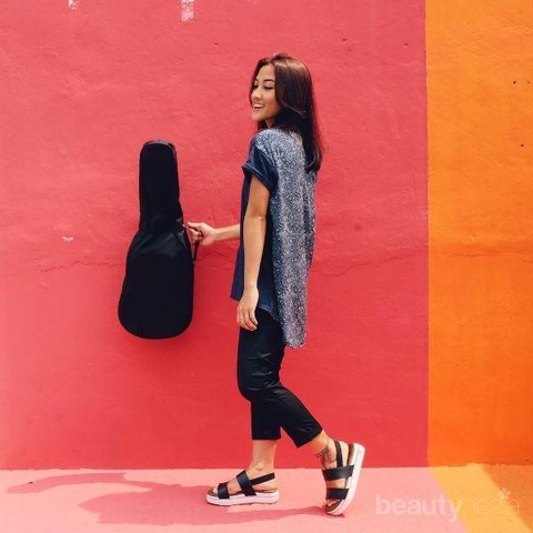 Asteriska memang tidak pernah kehabisan ide ya dengan koleksi kain batik yang ia miliki. Tak hanya menggunakan kain batik sebagai rok, Asteriska juga melilitkan dan mengikatnya sehingga menjadi sebuah atasan yang menyerupai kemben. Kamu bisa mengambil inspirasi dari cara unik Asteriska ini dan memadu padankan dengan jeans hitam. Gunakan sendal etnik agar penampilan boho kamu semakin maksimal. Simpel tapi membuat kamu tampil semakin gaya kan?