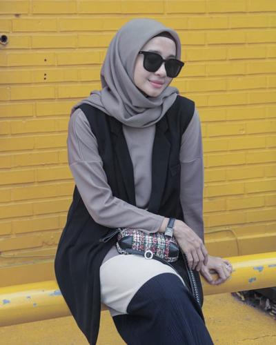 Nah, untuk gaya hijabnya sendiri, Bella sehari-hari paling suka gaya simple begini. Berbekal satu peniti untuk menyatukan dua sisi kerudung di bagian leher, tampilan ini bisa disempurnakan dengan menyampirkan kedua ujung sisinya ke pundak. Mudah sekali, kan?