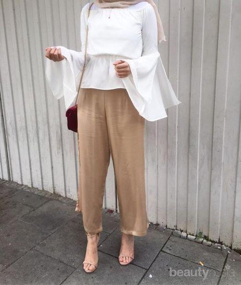 Inspirasi outfit hijab ke kampus selanjutnya adalah dengan menggunakan celana yang berbahan silk alias sutra. Kamu bisa juga pilih bahan lain yang flowy atau jatuh alias non-structured saat digunakan. Tampilan ini cocok banget untuk kamu yang dapat giliran maju presentasi. Kamu memberikan penampilan yang lebih rapi dari biasanya tetapi juga tidak terlalu formal untuk tampilan ke kampus. Bahan silk ini cocok banget untuk memberikan kesan rapih, formal, dan elegan. Jika ingin mendapatkan kesan formal yang optimal, coba deh pilih warna coklat muda, Beautynesian!