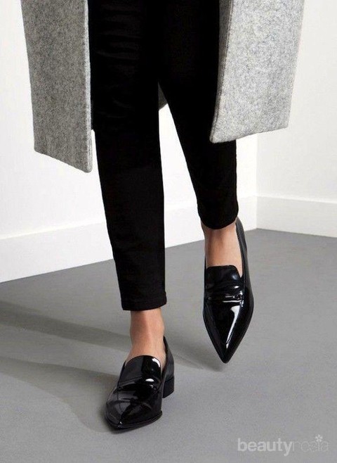 Jenis sepatu yang juga tidak boleh kamu lewatkan adalah jenis moccasin. Flat shoes hitam model unisex ini memiliki kelebihan diantaranya nyaman digunakan karena materialnya yang ringan. Sepatu ini memiliki ciri khas sol karet yang unik dengan detail jahitan atau fringe di bagian ujung jari.