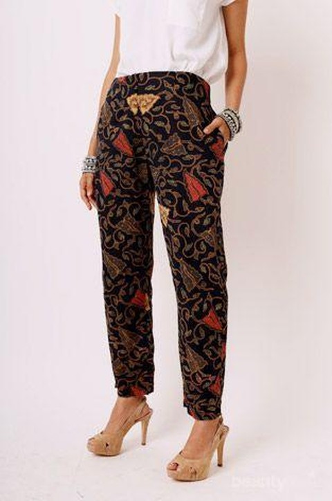 Celana batik dengan motif klasik yang terdapat aksesoris tali di bagian bawah ini, juga bisa jadi pilihan untuk outfit kondangan kamu di weekend nanti. Modelnya yang lurus seperti celana pensil juga pas banget untuk kamu yang memiliki bentuk tubuh tinggi.