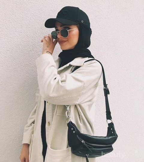 Foto: https://id.pinterest.com/pin/429601251953039831/Warna hitam mungkin adalah warna favorite bagi semua wanita yang memiliki kelebihan berat badan ataupun pipi tembem. Jika busana berwarna hitam membantu terlihat 'menguruskan' tubuh, hijab berwarna hitam pun juga dapat membantu agar pipi terlihat tirus, lho. Ini adalah salah satu tips yang sering digunakan si pipi tembem agar pipinya terlihat tirus. Patut dicoba ya, Ladies!