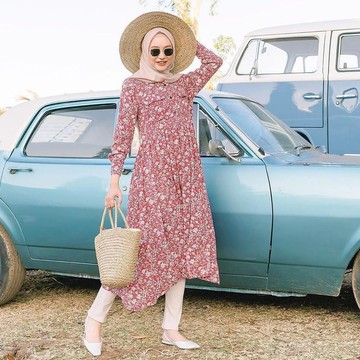 Inspirasi lainnya datang dari Bahjatina. Penampilan yang satu ini cocok buat kamu yang perlu inspirasi padu padan semiformal. Tina memasangkan rok plisketnya dengan blus motif dan hijab warna senada. Biar enggak kaku, Tina memakai kacamata hitam dan sneaker shoes. So cool!