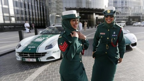 Terakhir, seragam polisi wanita berhijab dengan style yang lebih modern yang fashionable terlihat dari tampilan para polisi wanita di Dubai. Mereka terlihat elegan dengan seragam serba hijau menggunakan perpaduan rok dan kemeja yang rapi. Tidak hanya itu, aksesoris topi dan mobil yang bernuansa hijau membuat para polisi wanita ini tampak berwibawa selama bertugas. Keren, ya!