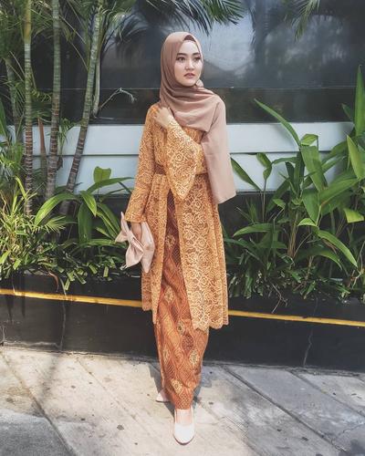 Bagaimana jika kain brokat berpadu dengan kebaya dress? Hasilnya stunning! Kamu bisa tiru gaya Dian Pelangi, kebaya dress bersiluet A-line yang memiliki model kerah V-neck dengan sentuhan tradisional.