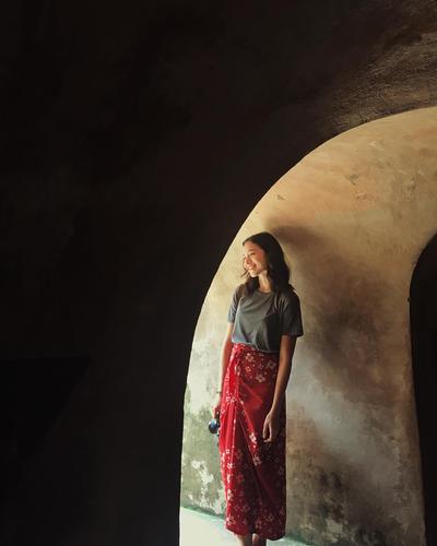 Napak tilas ke tempat-tempat bersejarah seperti Taman Sari atau Candi Borobudur, gaya Putri Marino ini seru banget buat ditiru. Cukup dengan memadukan rok lilit dengan kaus oblong lengan pendek yang nyaman di badan. Anti gerah!