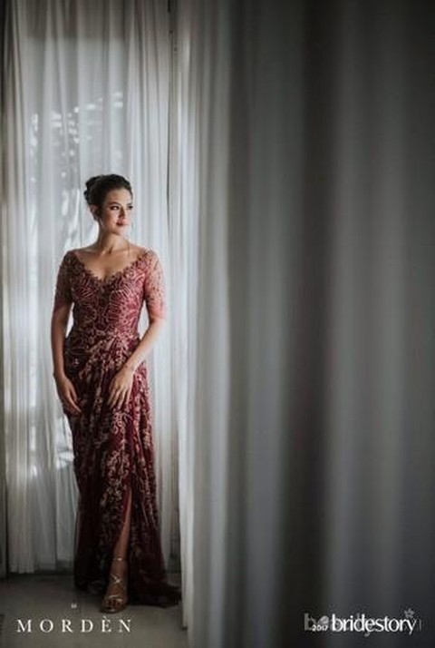 Seminggu setelah digelarnya resepsi Jakarta, pernikahan Raisa masih berlanjut di Bali. Resepsi yang diadakan Villa Plenilunio ini lebih kasual dan intim. Raisa pun tampil menawan dengan gaun berwarna maroon dengan detail cantik karya desainer lokal, Biyan.