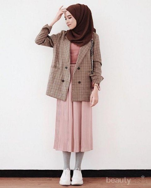 Jika kamu ingin bermain warna, tidak ada salahnya untuk memilih warna-warna manis seperti pink yang dikombinasikan dengan nuansa earthy tone. Pilihan style ini cantik banget untuk digunakan saat kumpul bersama teman-teman atau reuni sekolah.