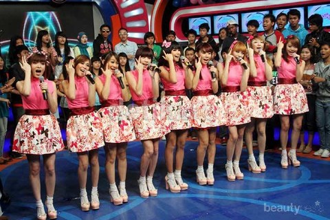 sleeveless shirt yang dipilih pun senada dengan pola pada batik. Sesuai dengan ciri khas Cherrybelle, mereka juga memadukan busana dengan