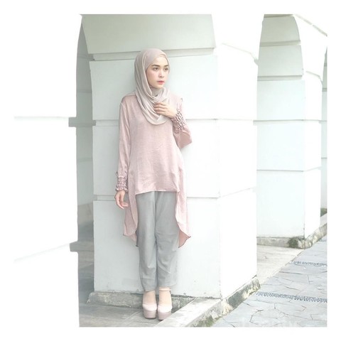Atasan model penguin dengan warna dusty pink dan abu-abu akan membuat style kamu lebih manis.