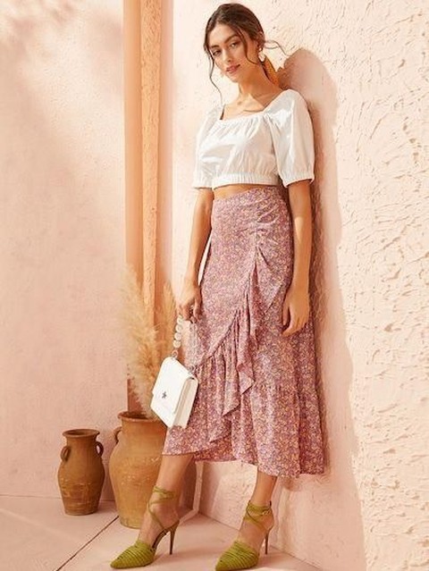 Bicara soal liburan, crop top kerap menjadi fashion item favorit wanita karena dapat membuat penampilan lebih chic dan fresh. Tak melulu crop top dengan model off-shoulder, kamu juga dapat tampil effortlessly chic dengan crop top bermodel square neck. Pilih square neck crop top yang memiliki warna cerah agar memberi kesan fresh, kemudian padankan dengan midi skirt bermotif floral yang lembut.