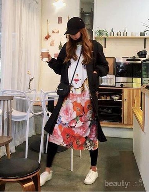 Foto: https://www.instagram.com/onestar_p/Penampilan lain artis cantik pemain My Fair Lady ini juga unik. Kali ini long dress full print berkarakter anime Jepang The Rose of Versailles . Print dari The Rose of Versailles memang sempat happening di dunia casual fashion look.
